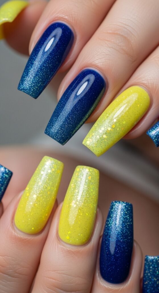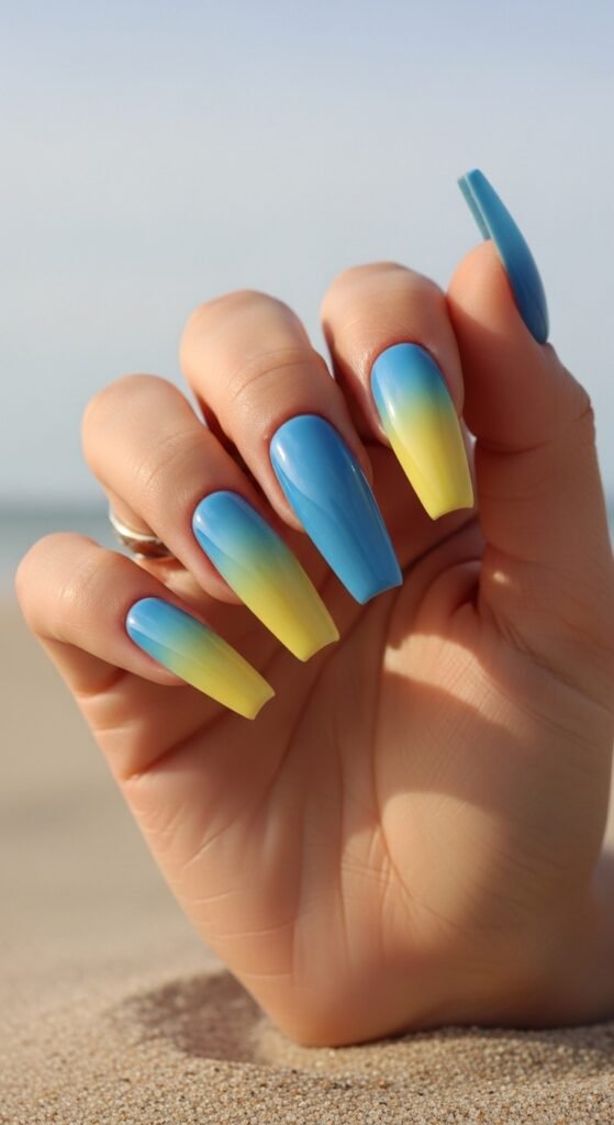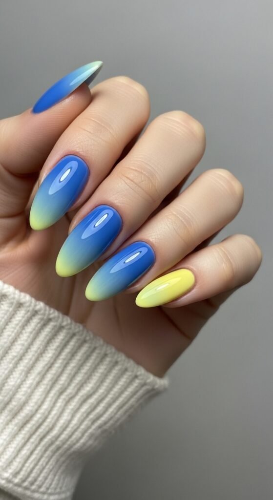 5. Ombre Blue to Yellow Nails