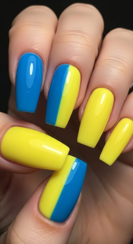 16. Half Blue Half Lemon Nails