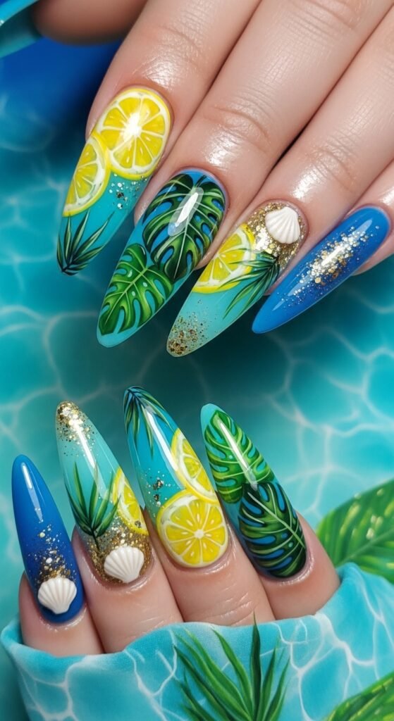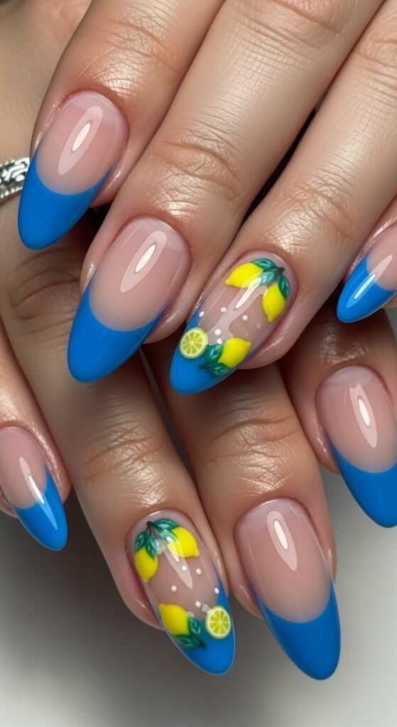 29. Tropical Lemon and Blue Nails
