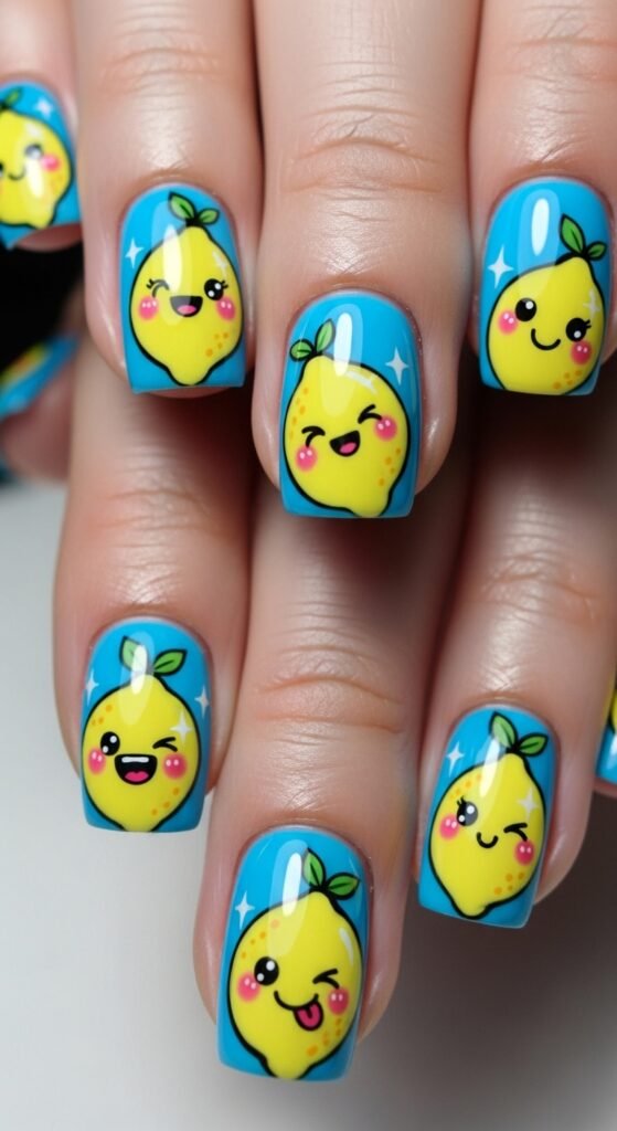 21. Lemon Cartoon Nails