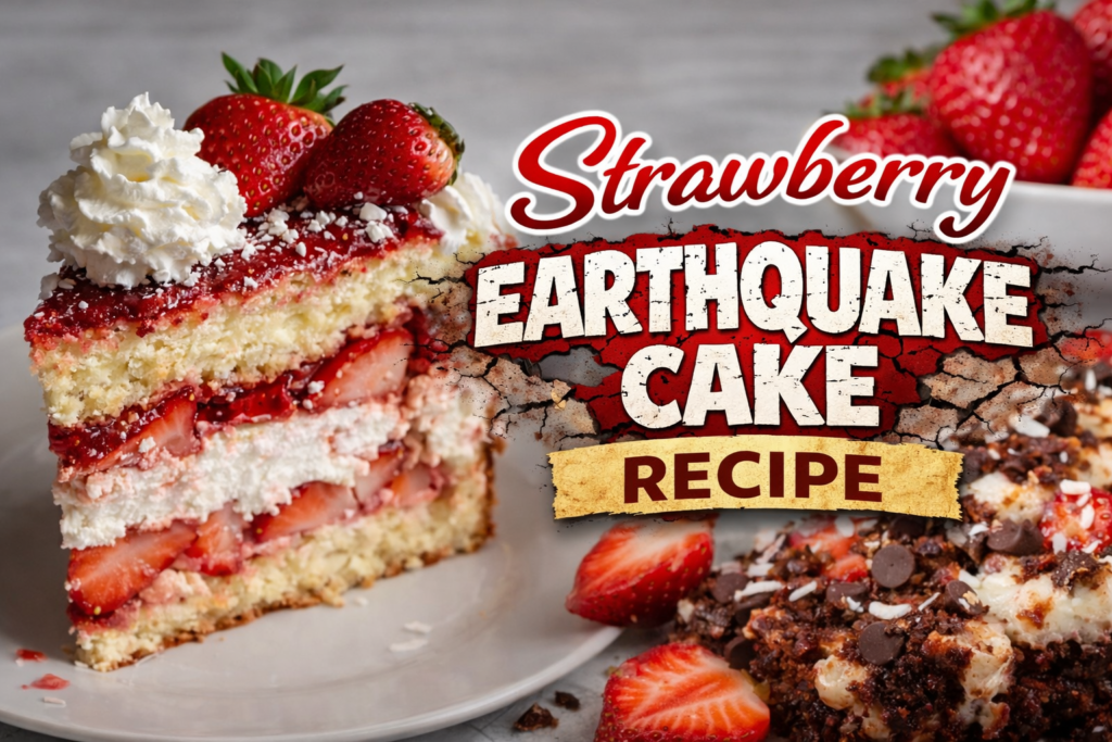 If you love decadent, ooey-gooey cakes like the famous “earthquake cakes” served in Southern bakeries and popular American restaurants, this strawberry version will steal your heart. Inspired by the indulgent dessert style made famous in Southern kitchens and elevated by pastry pros like Paula Deen, this Strawberry Earthquake Cake combines moist strawberry cake, creamy cheesecake swirls, coconut, white chocolate, and a buttery crackled top that forms naturally as it bakes.