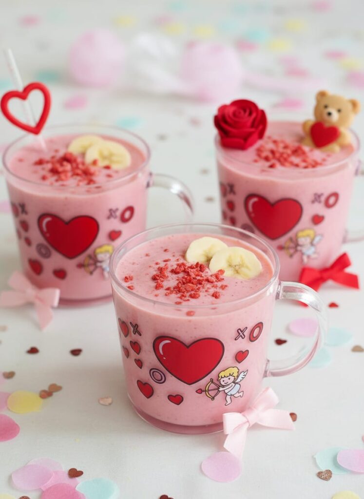 Blend strawberries, bananas, and milk for a naturally pink smoothie. Serve in fun cups with heart straws. It’s refreshing and healthy. Kids love the bright color. Perfect for snack time or breakfast. Add whipped cream for a treat.