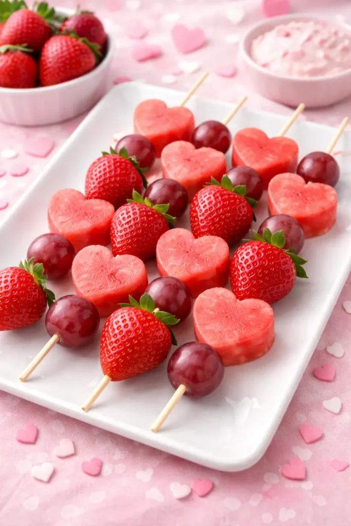 2. Valentine’s Day Fruit Kabobs 🍇