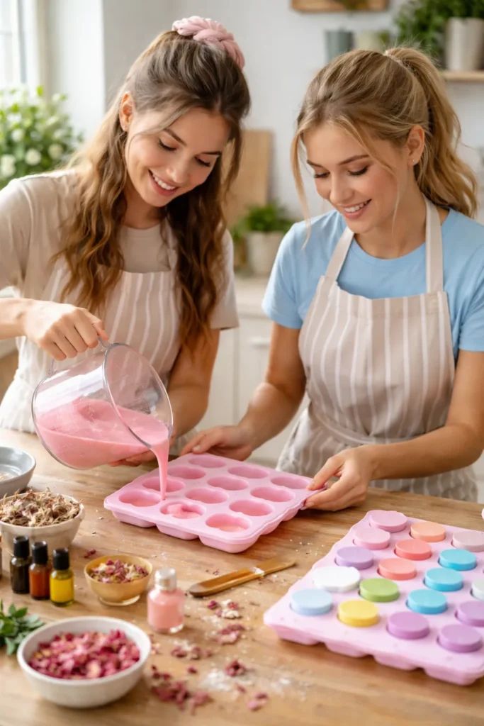 Make DIY bath bombs using heart molds and essential oils. Choose calming or floral scents. This is both fun and practical. Package them in cute bags to take home. Perfect self-care vibes.