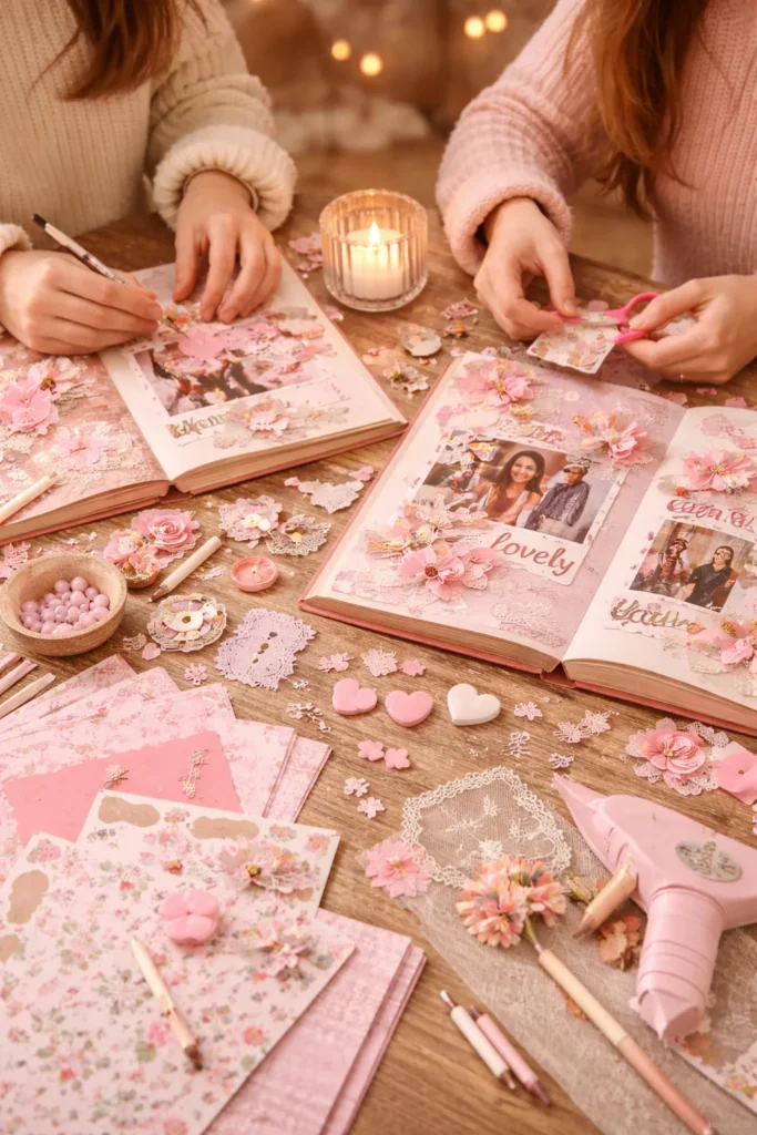 Design scrapbook pages dedicated to self-love or friendship memories. Use photos, stickers, washi tape, and handwritten notes. This activity is emotional, meaningful, and relaxing. It’s a great way to reflect and appreciate your friendships. Perfect for slower, heartfelt moments.