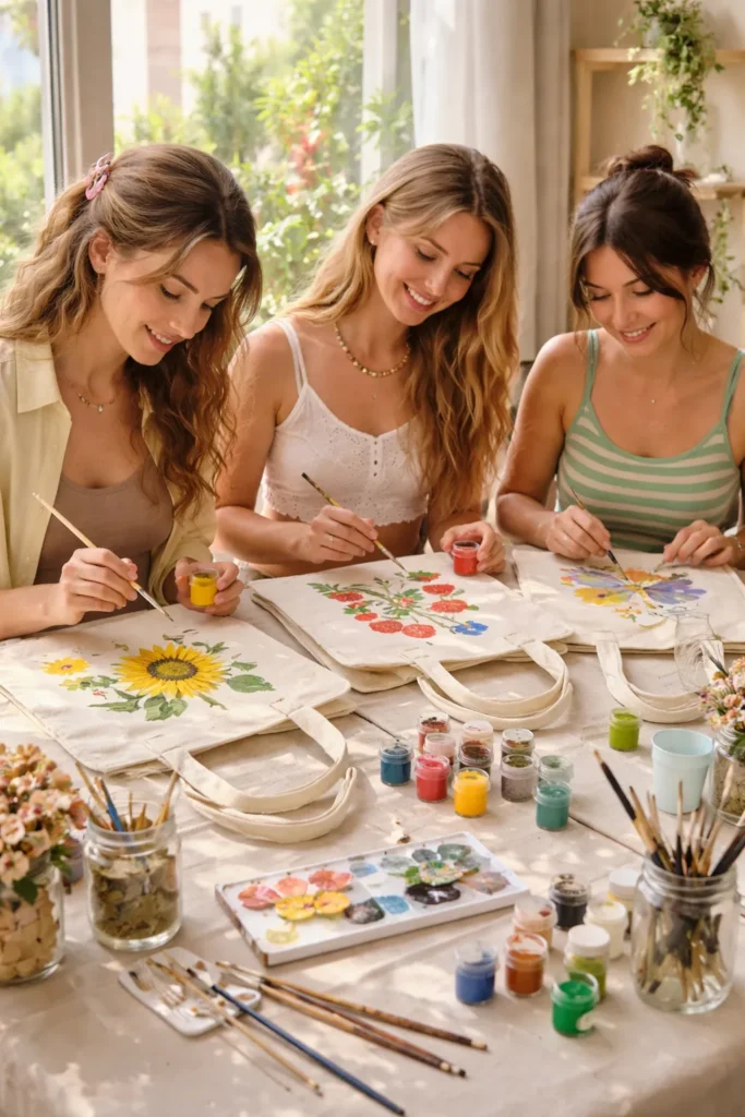 Design charm necklaces using hearts, initials, or symbols. Each charm can represent your friendship. Exchange necklaces at the end of the night. It’s sentimental and stylish. A perfect closing activity.