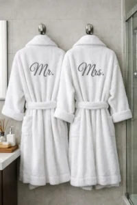 Bring the luxury spa experience home with matching, high-quality waffle or plush robes embroidered with your initials. It is the perfect attire for a lazy Valentine’s morning breakfast in bed or a relaxing evening after work. Choosing a high-thread-count cotton or real silk elevates this gift from practical to indulgent. It signals that you value their relaxation and comfort above all else.