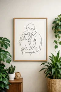 Move over traditional photography; digital illustrations are the new trend in home decor. Commission an artist to draw the two of you in a specific style, such as watercolor, line art, or even in the style of The Simpsons or Disney. It captures your likeness in a whimsical way that a standard photo cannot. Framed beautifully, this becomes the centerpiece of your gallery wall.
