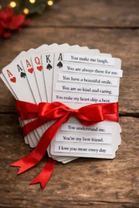 Take a standard deck of playing cards and turn them into a book of love. On each card, paste a label or write directly on it one specific reason why you love your partner. Punch a hole in the corner and bind them with a ring for a chunky, handheld book of affirmations. It is an affordable DIY project that packs a massive emotional punch, reminding them of all the little things you notice.