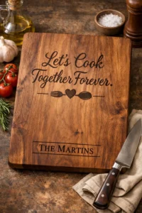 For the couple that loves to cook together, a personalized cutting board is a kitchen essential. Engrave it with your family name, a significant date, or a cute pun like “Let’s Cook Together Forever.” Made from high-quality wood like walnut or maple, it serves as both a functional tool and a beautiful serving platter for charcuterie nights. It brings a touch of rustic charm to your Valentine’s dinner prep.