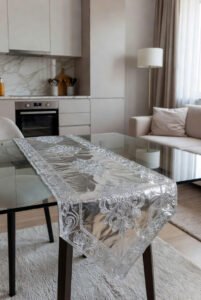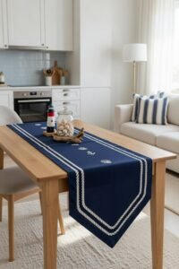 Linen runners in neutral shades like beige, ivory, or soft gray create a calming, refined aesthetic. The beauty of linen lies in its relaxed, slightly wrinkled texture that feels effortless and modern. Ideal for everyday dining or Scandinavian-style homes.