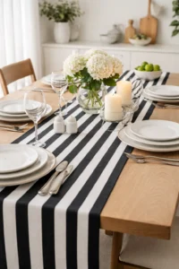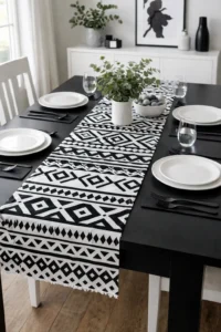 Geometric runners add personality and movement to your table. Black and white patterns create modern contrast, while colorful prints energize the space. Perfect for contemporary apartments or eclectic homes.