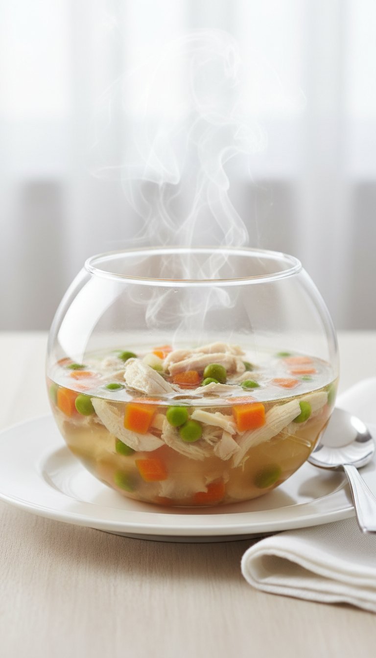 Sometimes you just need something light. A clear broth with shredded chicken and finely diced vegetables is easy on the stomach and very hydrating.