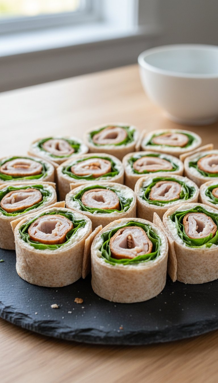 Using whole wheat tortillas, these bite-sized wraps are easy to eat and lighter than sandwiches. They are great for kids or for grazing slowly during Iftar.