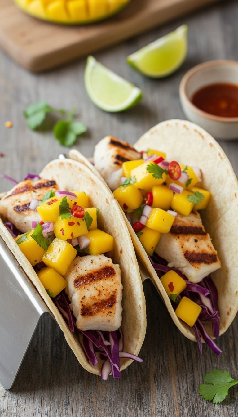 13. Grilled Fish Tacos with Mango Salsa