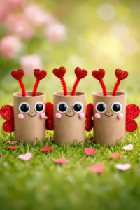Stop throwing away those empty toilet paper rolls and turn them into the cutest insects in the garden. Wrap the cardboard tubes in pink or red construction paper and add pipe cleaner antennae and googly eyes. You can cut heart shapes for the wings to keep with the holiday theme and let the kids draw smiley faces. These stand up on their own, making them perfect for a festive mantle display or a 3D greeting card. It is a wonderful lesson in upcycling and creativity for younger children.