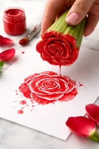 Who knew that the bottom of a celery stalk looks exactly like a rose when stamped? Cut the stalks off a bunch of celery, leaving the base intact, and dip it into red or pink paint. Stamp it onto paper to create beautiful, swirling floral patterns that look surprisingly realistic. Kids can paint green stems and leaves to turn the stamps into a full bouquet. It is an inexpensive way to make high-quality art prints that look beautiful in a frame.