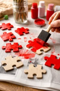 If you have a puzzle with missing pieces, don’t throw it out—turn it into a clever Valentine’s frame. Glue the puzzle pieces around the border of a cardboard frame and paint them red, pink, and white. Add a photo of the child in the center and write “I Love You to Pieces” on the bottom. It is a witty, textured craft that gives new life to old toys. This makes for a charming addition to a family photo wall or a desk accessory.