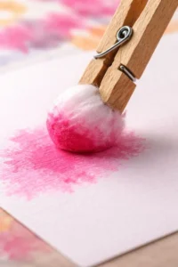 This is a fun sensory painting technique that uses clothespins and cotton balls instead of traditional brushes. Clip a cotton ball into a clothespin, dip it into paint, and dab it onto a heart stencil. The result is a soft, textured, cloud-like finish that looks professional and keeps little fingers clean. It is an excellent way for toddlers to explore color mixing without the chaos of finger painting. The final artwork looks soft and dreamy, perfect for a Valentine’s card.